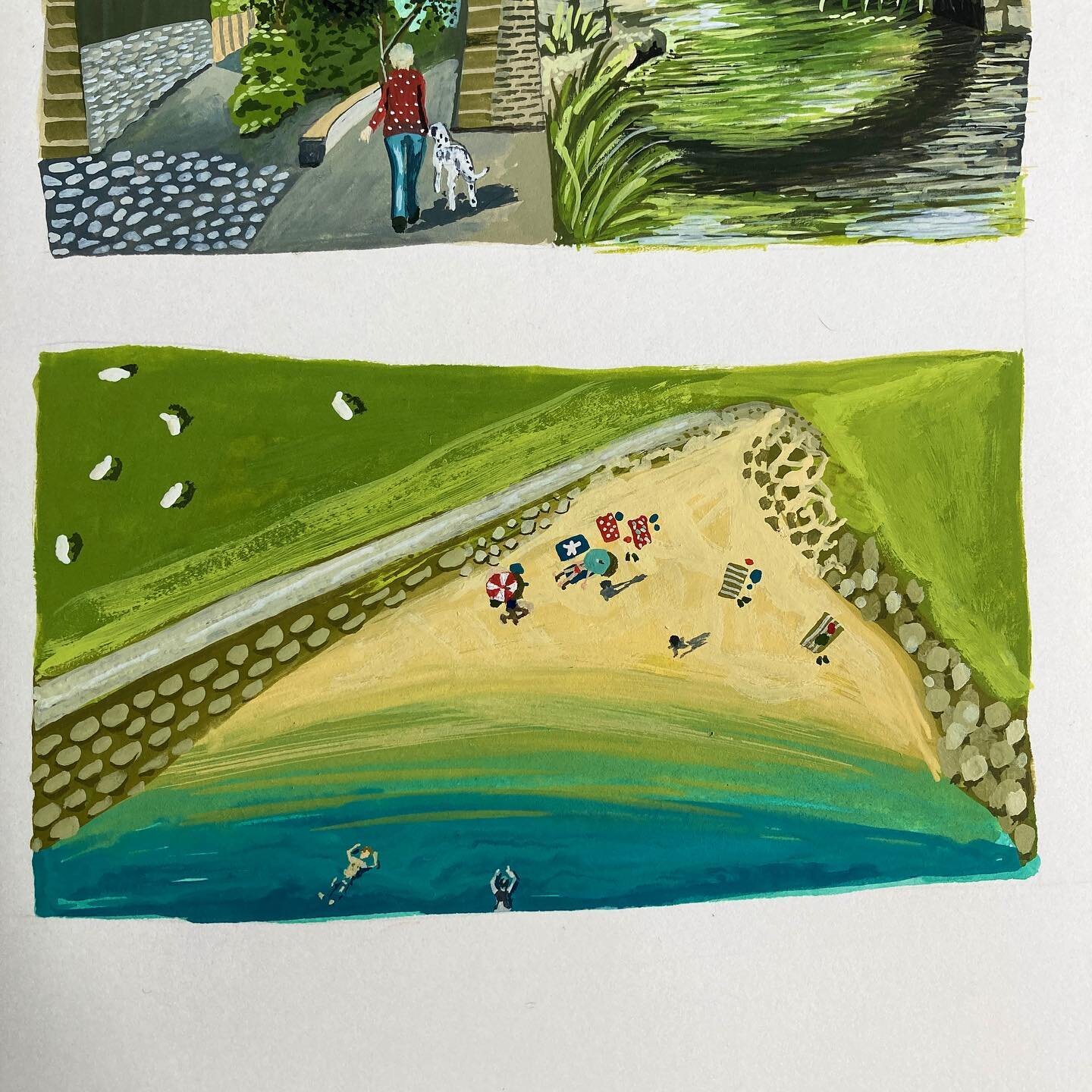 “Harriet did a fantastic job painting our wildlife pond, she not only captured the essence of the pond perfectly, she also captured us in our now familiar position, lying on the edge, peering into the depths. Her unique style makes the picture fun and interesting and I would not hesitate to recommend her to our friends.” IM